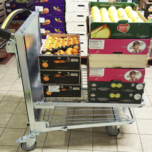 Ergonomische wagen voor het vullen van schappen – draadplateaus – 600×800